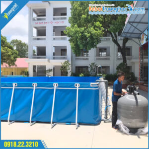 - Là loại bể bơi lắp ghép bao gồm hai bộ phận chính: khung sắt mạ kẽm sơn tĩnh điện và bạt PVC bọc bên trong để giữ nước.